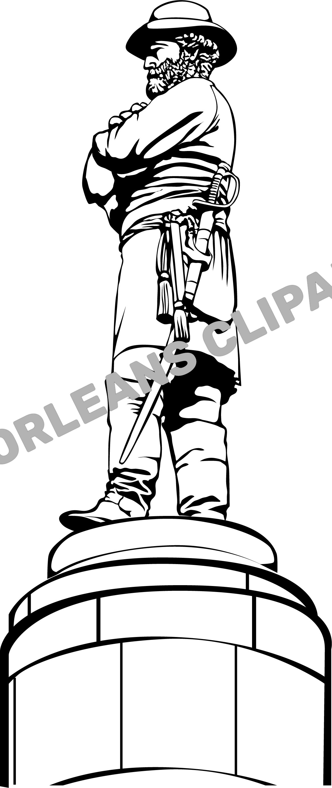 Black and white vector illustration of Robert E. Lee statute in New Orleans.